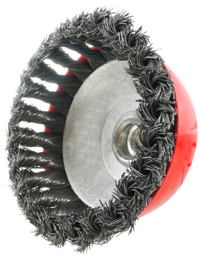 Drut splatany stalowy. Doskonała jakość, bardzo gęsty drut oraz wysoka wydajność przy czyszczeniu i innych pracach. Są przeznaczone do usuwania rdzy, zendry, czyszczenia powierzchni, usuwania farb, oczyszczania spawów. Szczotki plecione mają duża sztywność, dzięki czemu są przeznaczone do obróbki zgrubnej jaki i wykańczającej , do agresywnego czyszczenia powierzchni lakierowanej lub rdzy.