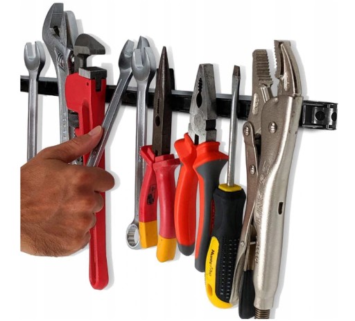 Niezbędna urządzenie w każdym warsztacie lub garażu. Ułatwia pracę poprzez uporządkowanie i wyeksponowanie najbardziej potrzebnych narzędzi. Przechowywanie narzędzi takich jak klucze, młotki, wkrętaki, szczypce itd. Profil stalowy wypełniony magnesem. Możliwość montażu na ścianie z cegły, płyty gipsowej oraz drewna.