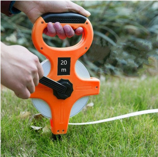 Miara geodezyjna o długości 20 m i szerokości 12 mm. przeznaczona do pomiarów dużych odległości w terenie otwartym lub w pomieszczeniach zamkniętych. Taśma wykonana z odpornego na ścieranie i blaknięcie włókna szklanego.Otwarta konstrukcja obudowy, pozwala na zachowanie taśmy w czystości i zapobiega blokowaniu taśmy w zamkniętej kasecie w wypadku zanieczyszczenia piaskiem lub ziemią. Wygodna korbka przyśpiesza zwijanie taśmy po dokonanym pomiarze.