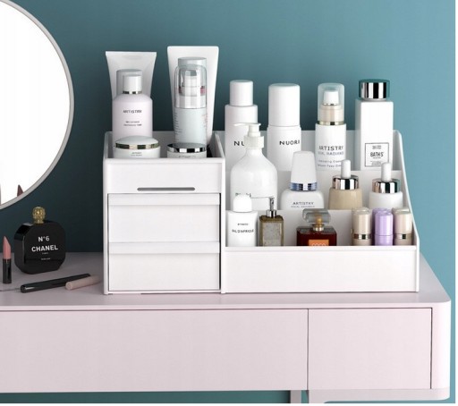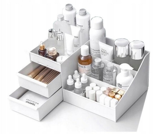 PUDEŁKO NA KOSMETYKI ORGANIZER PÓŁKA SORTER KOSMETYCZNY BIAŁY 2 SZUFLADY