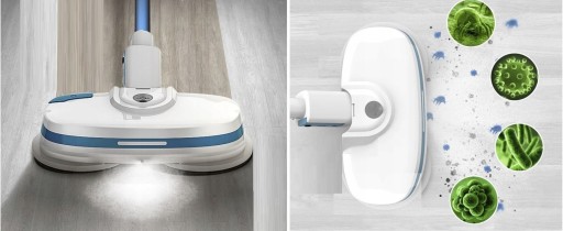 Obrotowe głowice poruszają nim jakby sam się napędzał i unosił. Jedna ręka używana bez żadnego wysiłku wystarczy, żeby nadać kierunek i utrzymać elektryczny mop. Całą pracę wykonuje praktycznie sam dzięki obrotowym nakładkom, co daje oszczędność czasu oraz wysiłku.