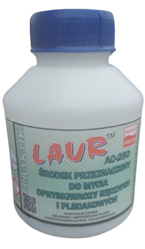 ✅ŚRODRK LAUR PRAKYIK AC-250 jest przeznaczony do mycia opryskiwaczy, siewników z zewnątrz i wewnętrznych powierzchni ich zbiorników, maszyn rolniczych po każdorazowym stosowaniu środków ochrony roślin. Doskonale sprawdza się także przy myciu klatek, stajni, kurników, szklarni i innych pomieszczeń przy użyciu urządzeń wysokociśnieniowych jak i czyszczeniu ręcznym. Charakteryzuje się dobrymi właściwościami myjącymi, czyszczącymi przy usuwaniu osadów i zanieczyszczeń. Doskonale sprawdzi się przy myciu między innymi - opryskiwaczy ręcznych i plecakowych.