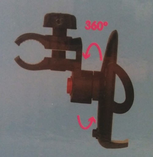 Mocowanie jest sztywne, ale można uregulować kąt pochylenia samego uchwytu do pożądanej pozycji. Regulacji dokonuje się po naciśnięciu czerwonego przycisku i przekręceniu uchwytu o odpowiedni kąt, po czym zwalnia się przycisk, a uchwyt pozostaje sztywno w tej pozycji.