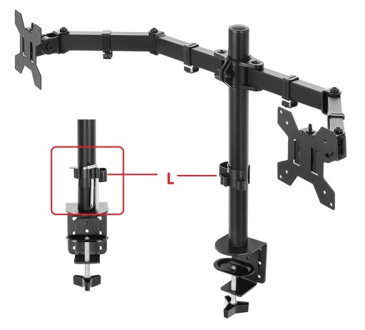 Ramiona trzymające monitory posiadają regulacje obrotu w 3-ch punktach: 1 - 180°, 2 - 240°, 3 - 240°