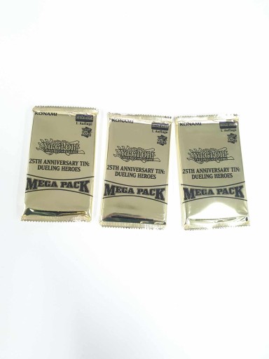 Każda puszka z okazji 25. rocznicy: Dueling Heroes zawiera 3 megapaki po 18 kart, każdy z DWOMA Prismatic Secret Rares, dwa Ultra Rare, Super Rare, Rare i dwanaście Commons.
