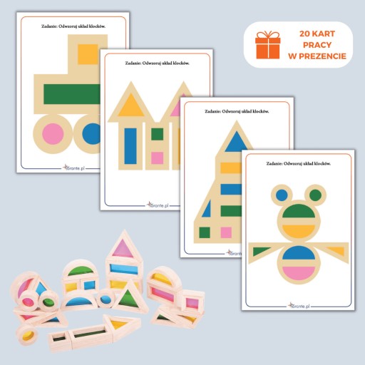 Każdy klocek ma transparentne, kolorowe wkładki akrylowe, które przepuszczają światło, tworząc zachwycające wizualne efekty. Ta cecha nie tylko rozbudza wyobraźnię dziecka, ale także wspiera rozwój jego percepcji wzrokowej i motoryki. Zestaw tęczowych klocków jest doskonały do terapii integracji sensorycznej, pomagając w harmonijnym rozwoju dziecka.