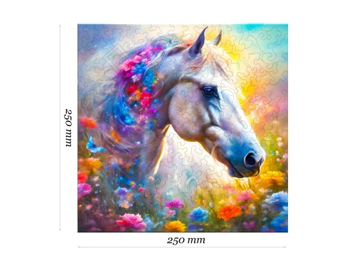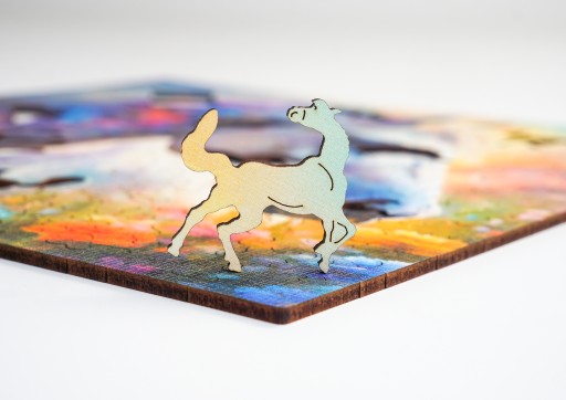 Przepiękne drewniane puzzle, przedstawiające ilustrację KONIA