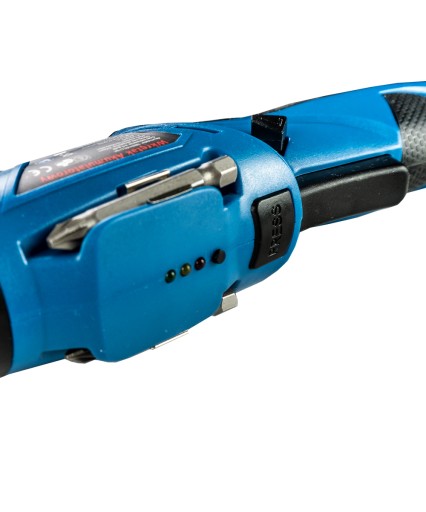 Dzięki przyciskowi weryfikacji stanu naładowania akumulatora zawsze można przygotować narzędzie do pracy ówcześnie ładując go za pomocą dołączonej do zestawu ładowarki.