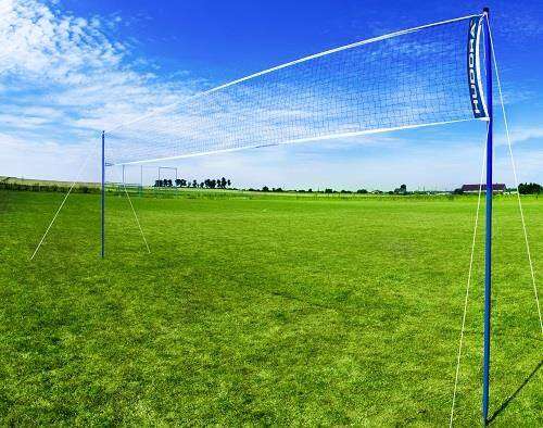 - Regulowana wysokość słupków pozwala na grę w siatkówkę i badmintona.