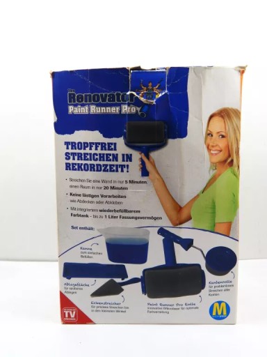 1 x Paint Runner Pro 1 x taca do przechowywania GRATIS 1 x pojemnik do uzupełniania farby GRATIS 1 x dodatek do malowania zakamarków GRATIS 1 x wałek do narożników GRATIS
