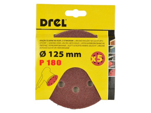 KRĄŻEK ŚCIERNY PAPIER NA RZEP DO SZLIFIERKI OSCYLACYJNEJ 125mm gr180 5 szt.