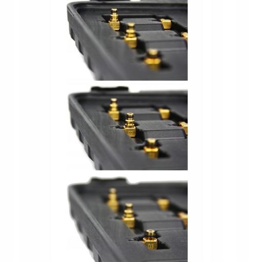 Zestaw końcówek pozwala na pomiary układów wtryskowych firmy Bosch, Siemens, Denso, Delphi w silnikach do sześciu cylindrów.