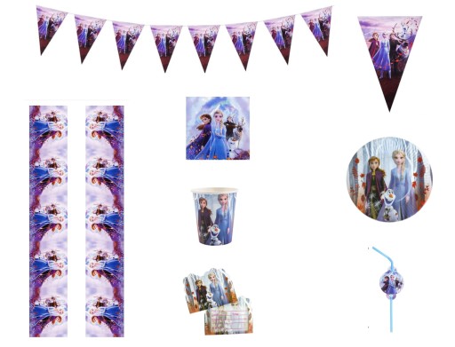 ZESTAW NACZYŃ URODZINOWYCH KRAINA LODU DLA 10 OSÓB