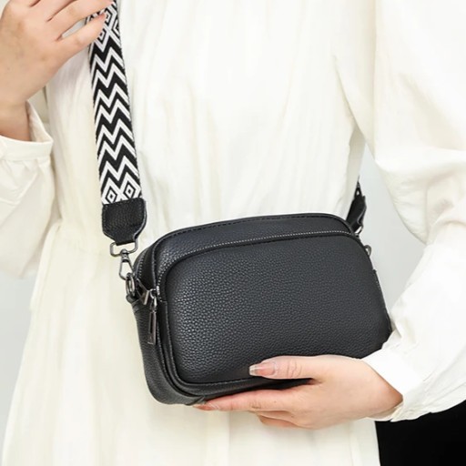 Damska torebka na pasku z prawdziwej skóry w kolorze CZARNY