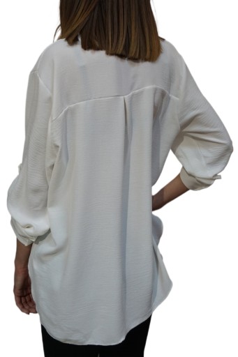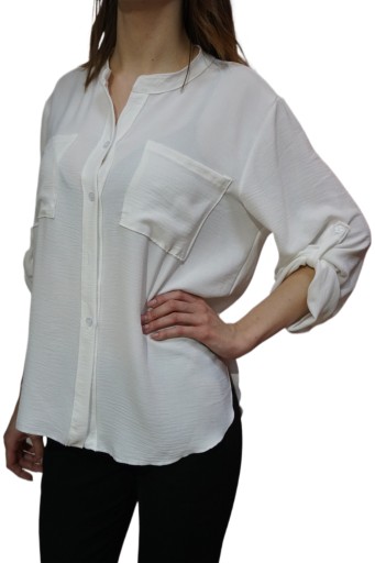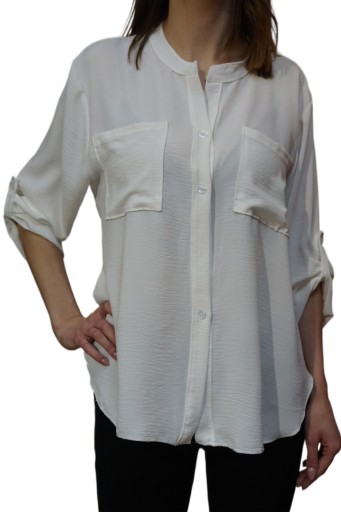 Stylowa bluzka koszulowa z długim rękawem. Bluzeczka wykonana z pzryjemnego lekkiego materiału. Sprawdzi się w połączeniu dżinsami oraz ze spódnicą. Na rękawkach zapięcie do podwinięcia.