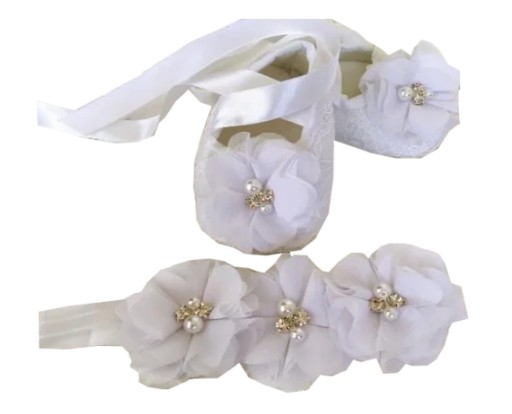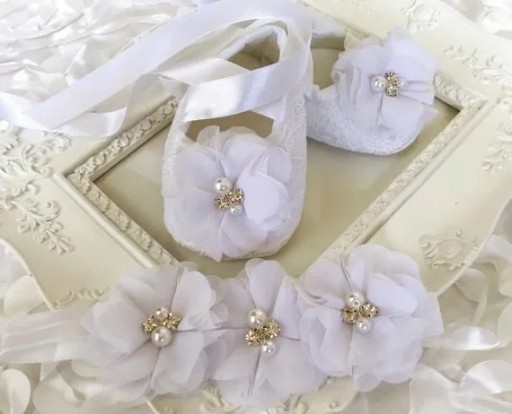 ТУФЛИ ТУФЛИ 9,5 10 см Размер 16 17 ПОВЯЗКА НА ГОЛОВУ цветы крещение