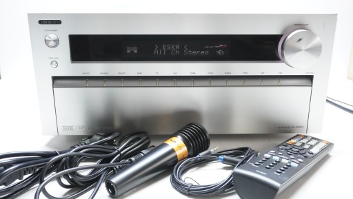 - zamienny nowy pilot RC-865M (różni się przyciskami wyboru źródła (brak VCR, PHONO). Wszystko można przełączyć z panelu przedniego lub poprzez menu ekranowe. Wszystkie wejścia są całkowicie konfigurowalne pod każdy guzik wyboru