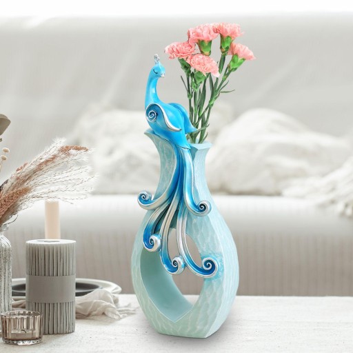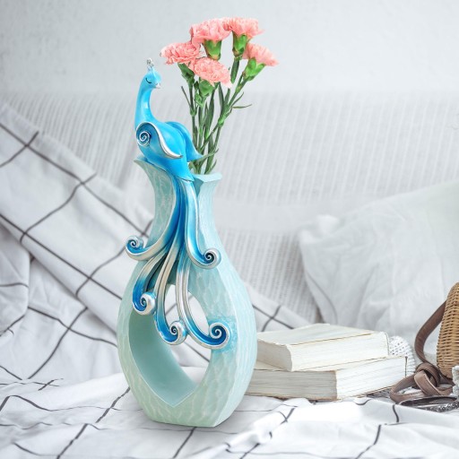 [Materiał najwyższej jakości]: Ten elegancki wazon w kształcie pawia wykonany jest z wysokiej jakości żywicy, co zapewnia jego trwałość i długowieczność. Idealny, aby dodać odrobinę luksusu do domu lub biura.