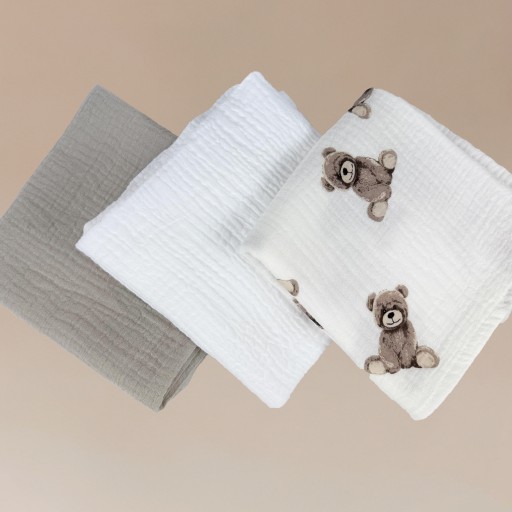 Pieluszki muślinowe są wyjątkowo przyjemne w dotyku. Dzieci uwielbiają być nimi otulone, często traktują je jak Przytulankę lub ulubiony kocyk. Najważniejsze jest to, że ta właściwość nie zmienia się nawet po wielokrotnym praniu, wręcz przeciwnie – pieluszka muślinowa z biegiem czasu staje się coraz bardziej miękka.