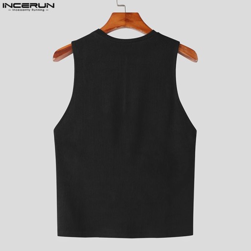 INCERUN Tops 2023 American Style New Mens Solid Color Knitted Tank Tops Casual Streetwear Hot Sale Male Well Fitting Vests S-5XL
