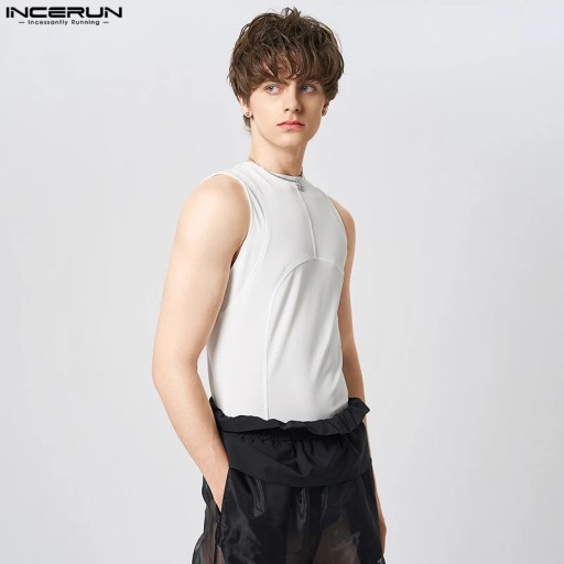 INCERUN Tops 2023 American Style New Mens Solid Color Knitted Tank Tops Casual Streetwear Hot Sale Male Well Fitting Vests S-5XL