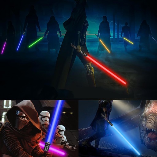 ⭐ Miecze świetlne mogą emitować 7 kolorów i wykonywać symulacje ruchu i walki - delikatne wymachy i efekty dźwiękowe walki podczas wykonywania różnych ruchów bojowych.