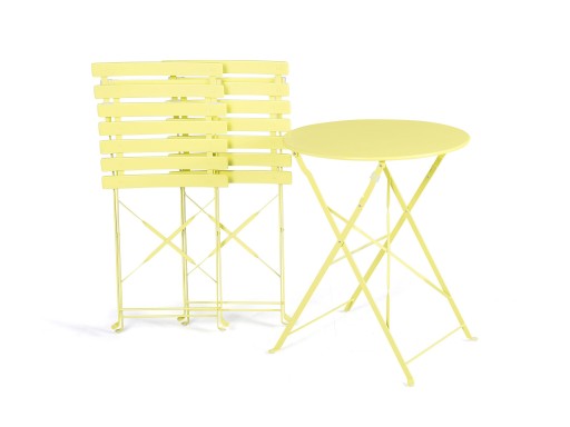 Wzbogać swój ganek o ten stylowy zestaw mebli. Wykonane z trwałego i łatwego w utrzymaniu metalu, są też lekkie, umożliwiając zmianę aranżacji w dowolnym momencie. Krzesła oraz stół mogą być też złożone, ułatwiając przechowywanie mebli poza sezonem. Ich kolor przyciąga uwagę i ożywia każdą przestrzeń, a dzięki prostemu designowi, zestaw ten wpasuje się w różne style twojego ogrodu.