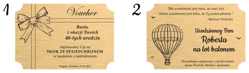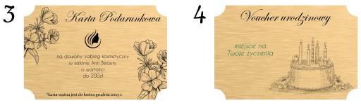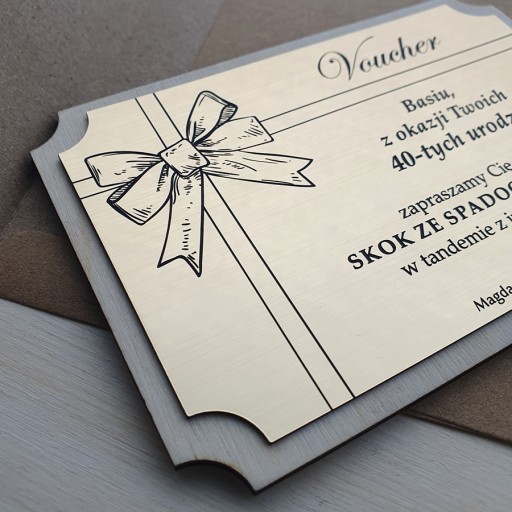 - złoty voucher o wymiarach 135mm x 90mm z personalizowanym grawerem