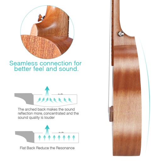 Wykonane ze starannie wyselekcjonowanego drewna-górna płyta, kredens i tablica ze sklejki mahoniowej, o gładkiej powierzchni i wykwintnym wykonaniu; Podstrunnica i mostek z drewna orzechowego zapewniają komfort gry.