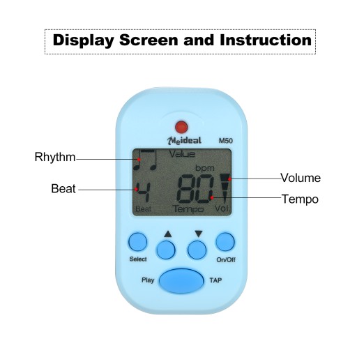 • Wielofunkcyjny, łatwy w użyciu. Funkcja stukania umożliwia przetestowanie idealnego tempa lub tempa utworu. Tył produktu ma klips i konstrukcję otworu zawiesia, łatwe do zamocowania i przenoszenia.