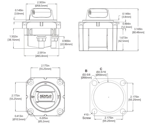 - Spełnia wszystkie wymagania American Boat and Yacht Council (ABYC) dotyczące przełączników akumulatorów