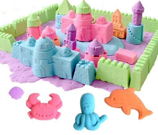 Zabawa w osiedlowej piaskownicy to coś co zapada w pamięci na długie lata. Gdy pogoda nie sprzyja wyjściom na dwór, możesz stworzyć plac zabaw w domu. Wystarczy kawałek miejsca na basen wypełniony piaskiem. Zestaw pozwoli na budowę różnych konstrukcji, odciskanie zwierzątek oraz na tworzenie własnych wariacji i krajobrazów. Piasek ten jest miękki, elastyczny i jednocześnie niezwykle stabilny, co nie przeszkodzi w budowaniu dużych wież.