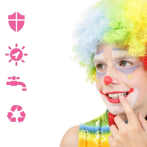 - Tę farbę do twarzy można stosować na różnych imprezach i wszelkich festiwalach takich jak karnawał, Halloween.