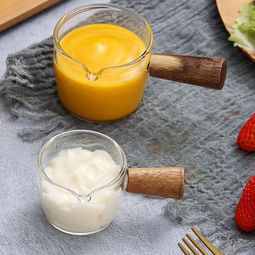 Mini szklana miarka o pojemności 50 ml z pojedynczą wylewką, miarka do kawy, kieliszek do kawy z drewnianym uchwytem do śmietany mlecznej