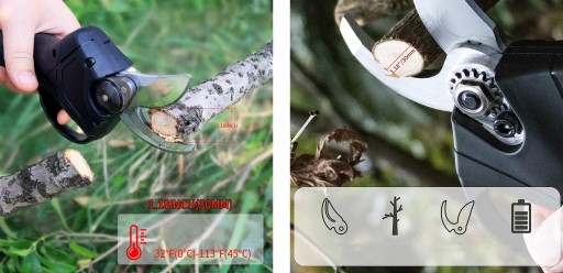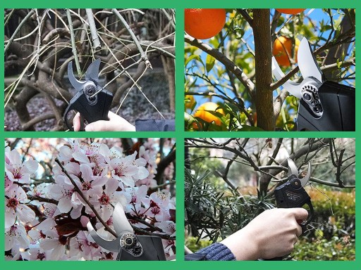 ✂️ Przeznaczone do cięcia, przycinania lub redukcji gałęzi w sadach, winnicach i innych miejscach. Jest łatwy w użyciu i 8 do 10 razy bardziej wydajny niż zwykłe nożyczki ręczne. Jakość cięcia jest znacznie wyższa w porównaniu z nożyczkami ręcznymi.