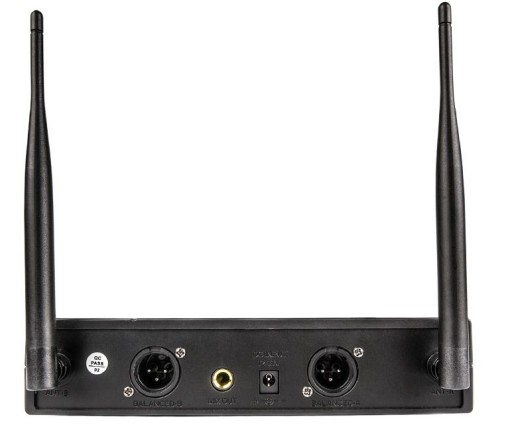 - W zestawie: 2 nadajniki, odbiornik, zasilacz, 4 baterie AA, przewód mono jack-jack 6,35 mm, instrukcja obsługi (EN/PL)