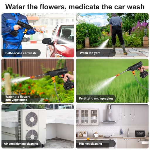 Szukasz wszechstronnej i wydajnej myjki natryskowej do swojego domu? Nie szukaj dalej – wybierz naszą bezprzewodową myjkę ciśnieniową! Dzięki mocnemu silnikowi i wysokiemu ciśnieniu wody ta myjka ciśnieniowa z łatwością wyczyści Twój samochód i garaż, podleje ogród i tak dalej.