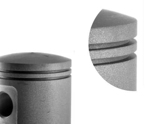 Tłok wykonany z wysokiej klasy stopu aluminium z zawartością krzemu powyżej 22%. Wpływa to uzyskanie możliwie najniższego współczynnika rozszerzalnosci cieplnej materiału spośród wszystkich tłoków dostępnych na rynku. Odlew poddany dwustopniowemu procesowi obróbki cieplnej.