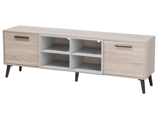 Szafka RTV, która łączy w sobie styl retro ze skandynawskim wykończeniem. Jej elegancki wygląd oraz funkcjonalność sprawiają, że wpasowuje się zarówno w nowoczesne, jak i tradycyjne wnętrza. Dwie szafki oraz cztery otwarte półki oferują dodatkowe miejsce na przechowywanie akcesoriów czy ulubionych czasopism.