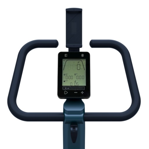 - Wyposażenie: komputer treningowy, uchwyt na smartfon, kółka transportowe, uchwyty na stopy