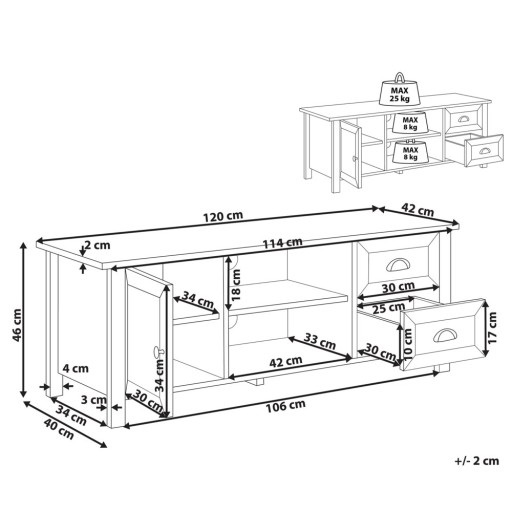Klasyczna szafka pod telewizor to przydatny element w każdym salonie. Dzięki sporemu miejscu do przechowywania pomieści akcesoria telewizyjne lub inne rzeczy, a dedykowany otwór na kable ułatwi trzymanie ich w porządku. Wykonanie z wytrzymałej laminowanej płyty wiórowej zapewnia trwałość, a jednocześnie sprawia, że mebel nie jest wymagający w pielęgnacji.