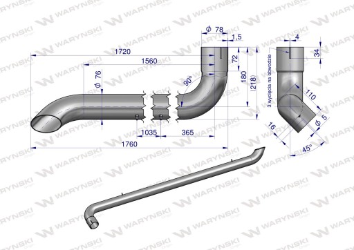 Tłumik rura wydechu inox AL164277 John Deere WARYŃSKI