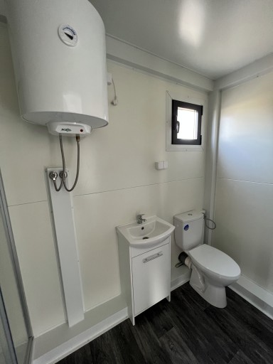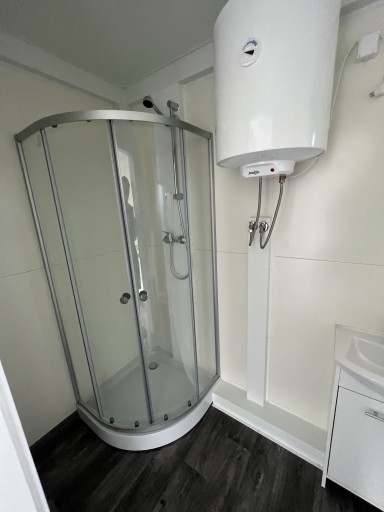 - łazienka (toaleta, umywalka z szafką, kabina prysznicowa, bojler, okno R/U 50x50)