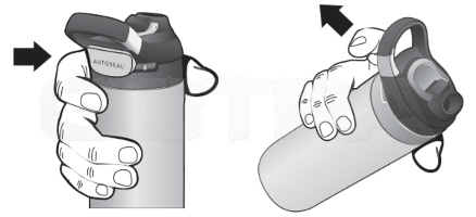 Po naciśnięciu przycisku AUTOSEAL® otwór do picia otwiera się i można pić. Po puszczeniu przycisku następuje szczelne zamknięcie kubka. Dzięki temu rozwiązaniu, aby swobodnie i bezpiecznie popijać swój ulubiony napój wystarczy tylko jedna ręka.