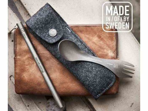 Praktyczny zestaw z LMF składający się ze słomki i legendarnego SPork'a.Spork Titanium to połączenie łyżki, noża i widelca.Wykonany z tytanu TI22, jednego z najtwardszych stopów na świecie.Tytan jest stosowany np.: w konstrukcjach lotniczych.Jest bardzo lekki i ekstremalnie wytrzymały.Wysoka biokompatybilność tytanu oznacza, że jest przyjazny dla organizmu.W komplecie ze sporkiem jest tytanowa słomka.Praktyczne etui wykonane z wełny merino.Rurka ze Sporkiem tworzy nietuzinkowy zestaw. Zapakowany w stylowe etui idealnie nadaje się jako prezent.