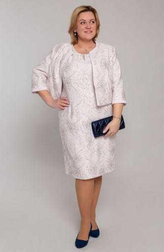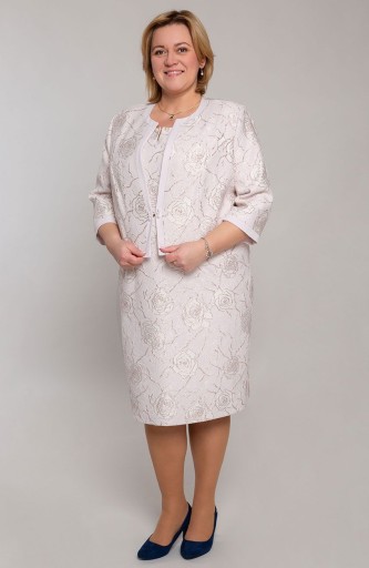 Ta czarująca i kobieca garsonka we wzór w róże, jest idealną propozycją dla Pań szukających wyjątkowej i stylowej kreacji na duże uroczystości i wesela.