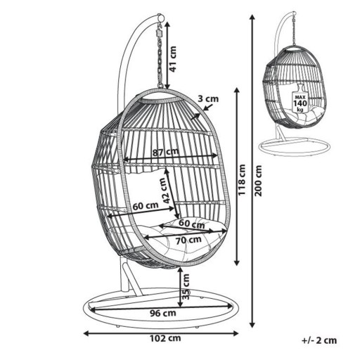 Modny fotel wiszący to doskonały dodatek do twojego salonu lub tarasu. Będzie służyć jako interesująca dekoracja i zapewni idealne miejsce do odpoczynku i relaksu. Łańcuch, na którym zawieszony jest fotel, umożliwia wprawienie się w delikatne kołysanie, które pomoże odstresować się po męczącym dniu. Wykonane z mocnego sznura plecione siedzisko zapewnia dużą trwałość, i sprawia, że krzesło zachowa doskonały wygląd przez cały czas.