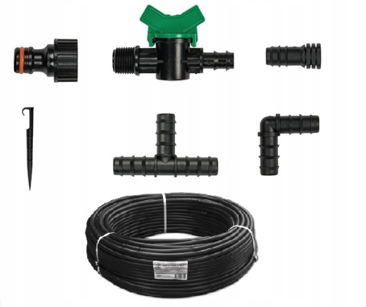 - Szybkozłączka ogrodowa do zaworu - 1 szt - umożliwia podłączenie węża ogrodowego do zasilania linii. Linię można podłączyć również w inny dowolny sposób.