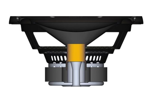 Bezpośrednie połączenie lekkiej, papierowej membrany stożkowej z cewką drgającą umożliwia dokładne odtwarzanie tonów niskich. Przeciwpyłowy kapturek z wtryskiwanego polipropylenu zapewnia sztywność i poprawia wewnętrzne tłumienie, co przekłada się na mocny, dynamiczny bas.