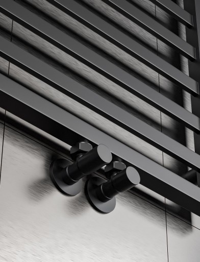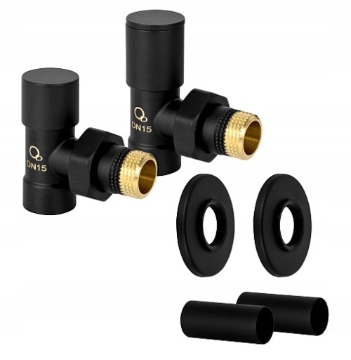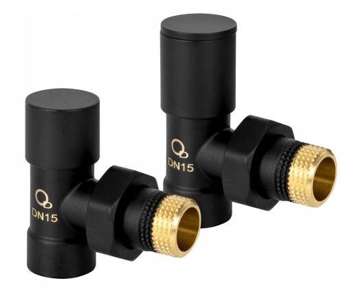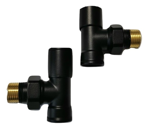 Wysokiej jakości zestaw zaworów grzejnikowych do podłączenia urządzenia grzewczego - grzejnika do instalacji oraz ustawienia temperatury w pomieszczeniu.
